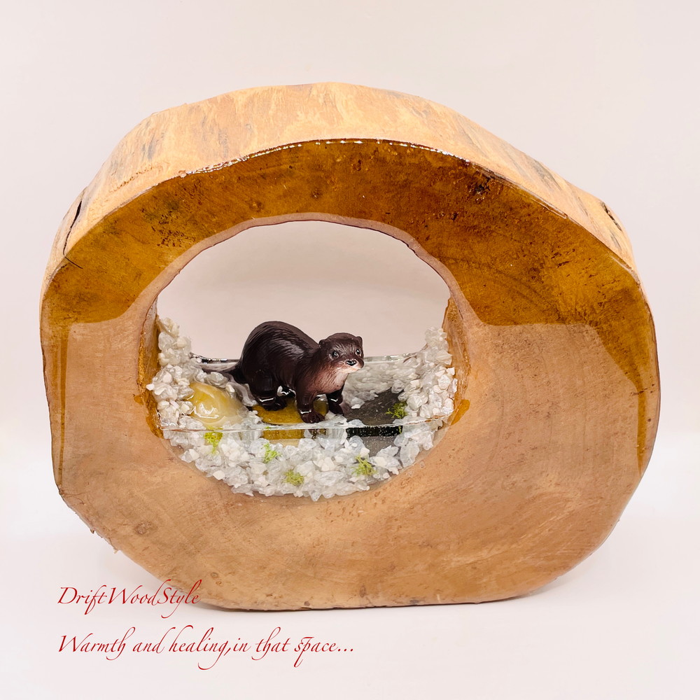 流木と自然界を結び付けて表現するために作成した,レジンアートです。