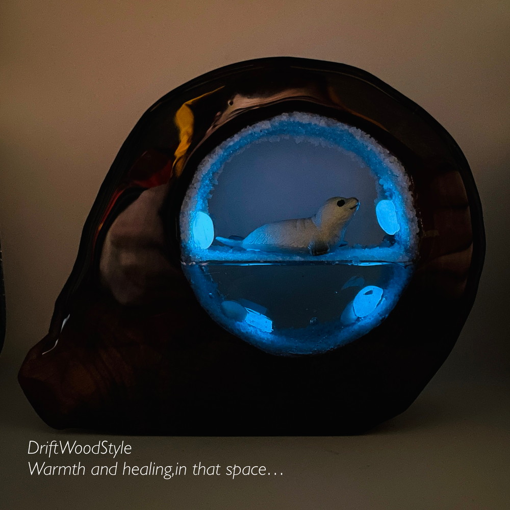 流木と自然界を結び付けて表現するために作成した,レジンアートです。