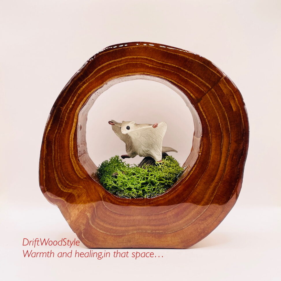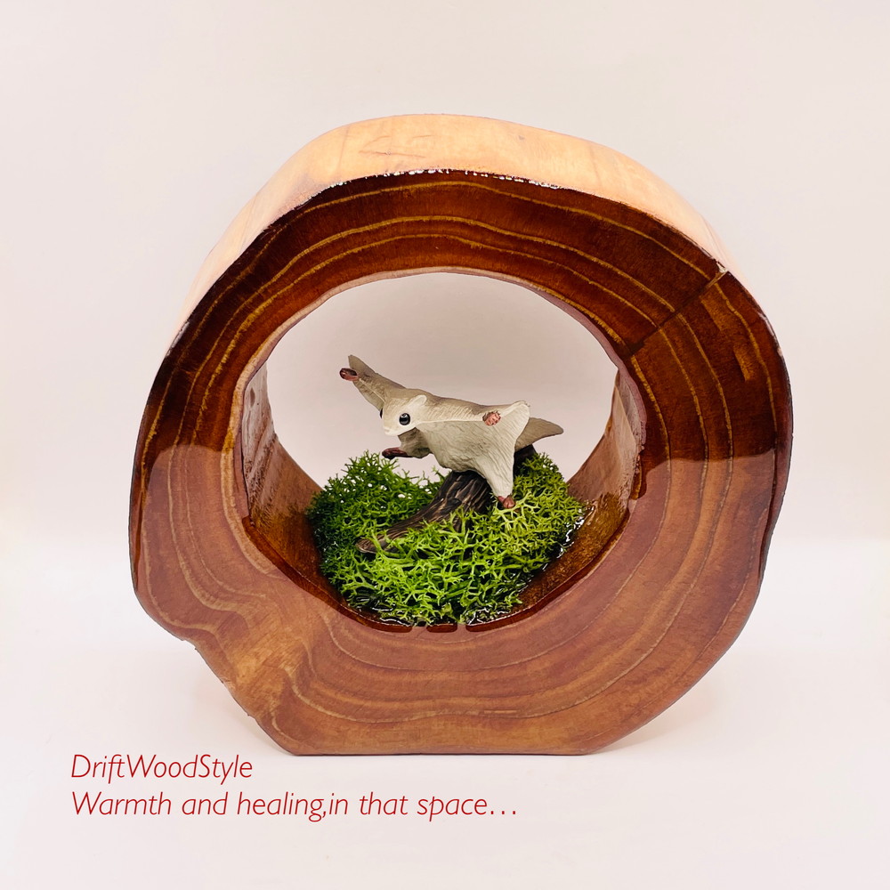 一つ限りの流木アート 羽ばたくエゾモモンガ N9