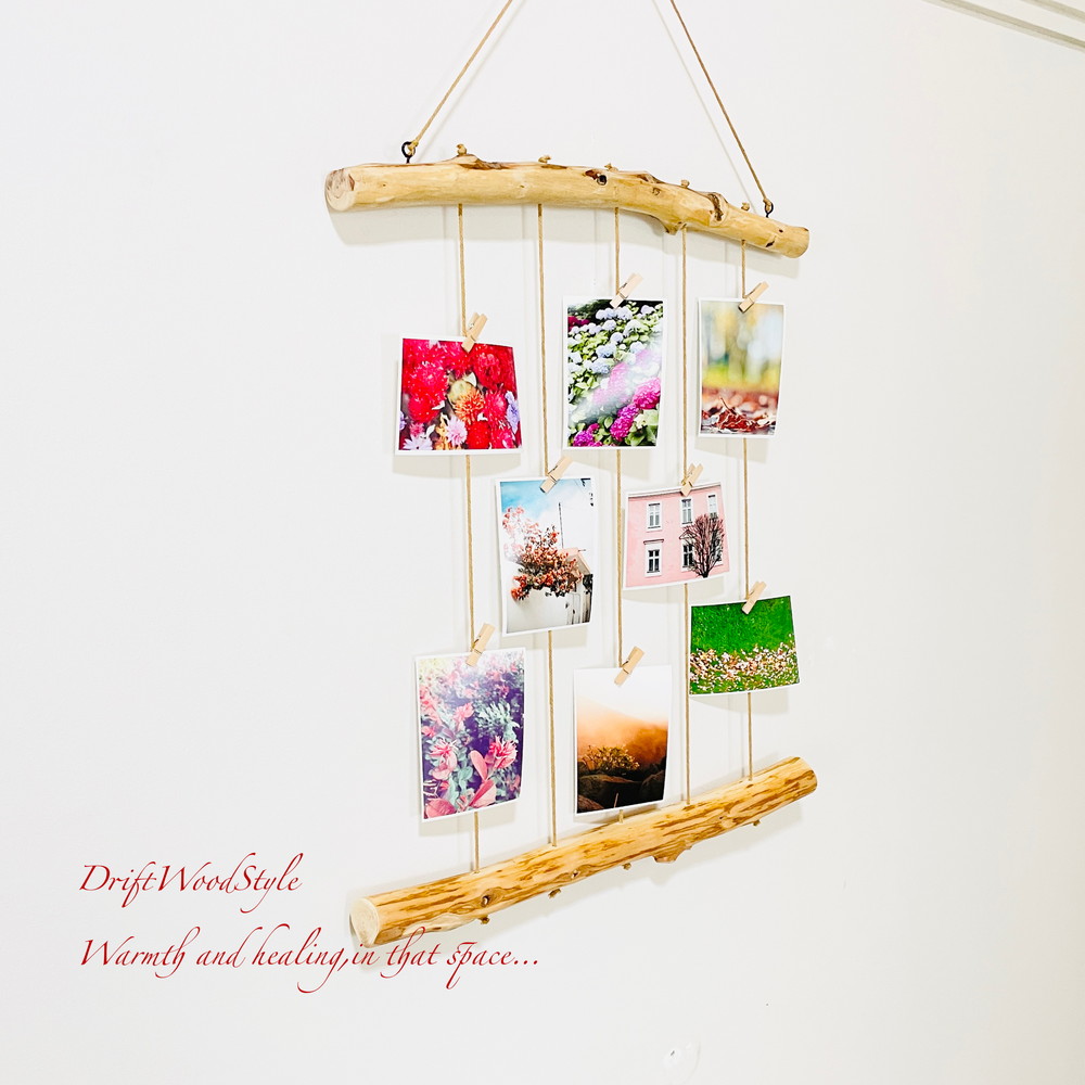 5本のロープに写真を取り付けて,自由にディスプレイできます。