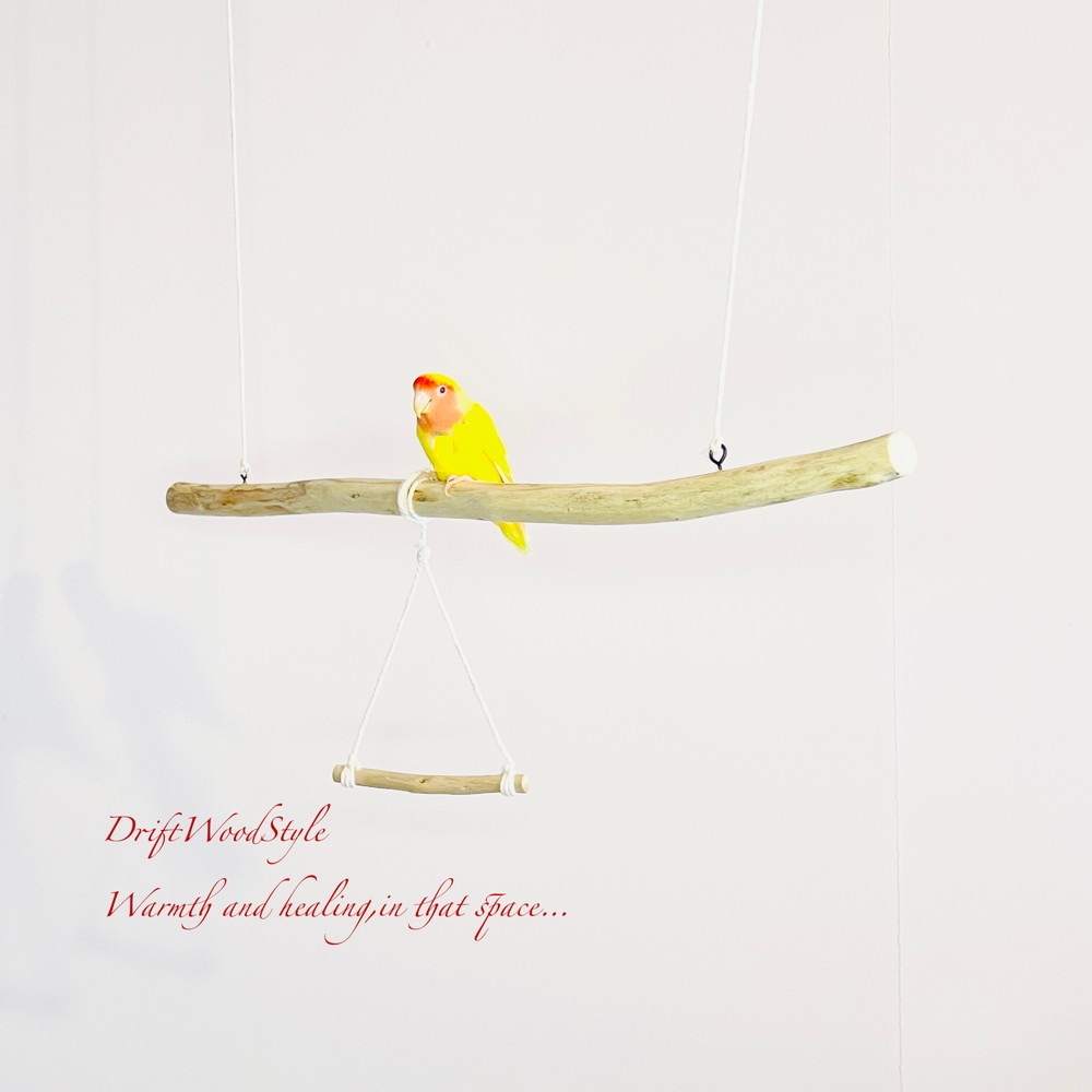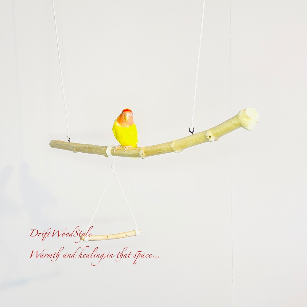 長い流木枝で小鳥が遊べる吊り下げタイプの止まり木です。