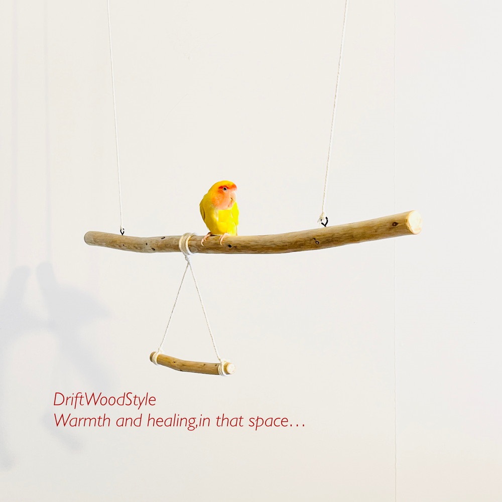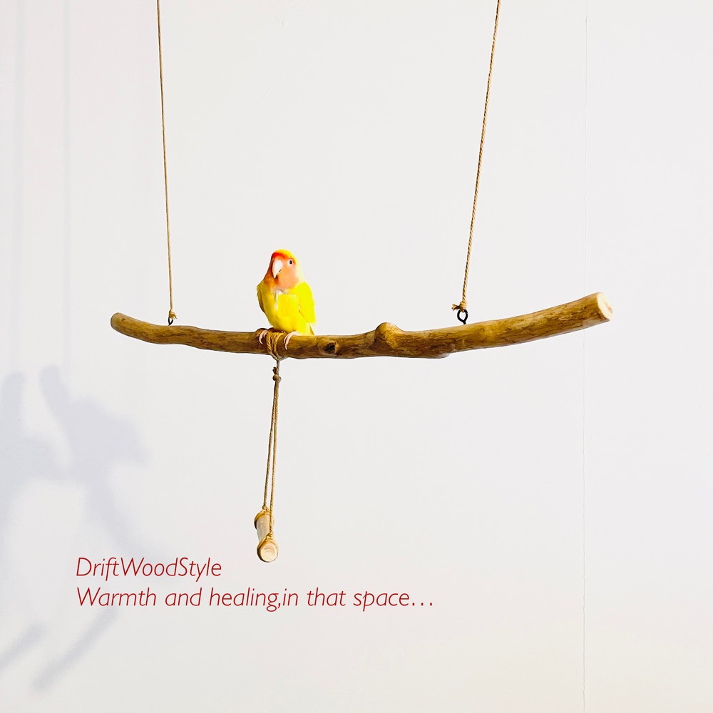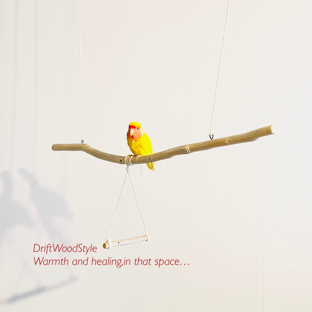 長い流木枝で小鳥が遊べる吊り下げタイプの止まり木です。